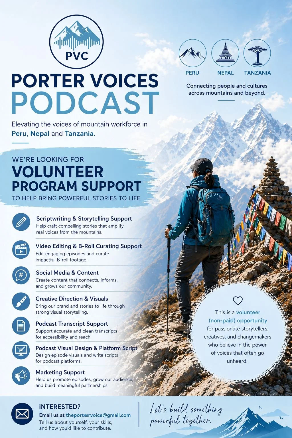 Through documentary film, journalism, capacity-building initiatives, and grassroots advocacy, we aim to reimagine mountain tourism as an industry that honors labor, uplifts local leadership, and values ethical storytelling.
